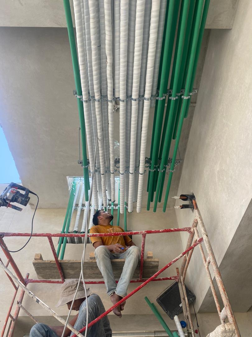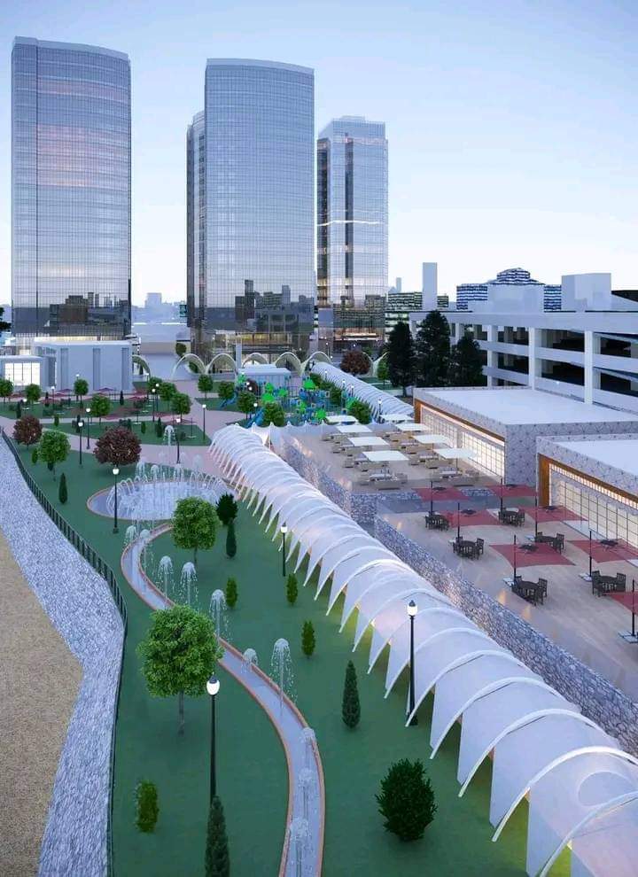 وتم تنفيذ النوافير الخاصة بالمدخل والتي يبلغ طولها اكثر من 400 متر وتم تشغيلها بفترة قياسية.