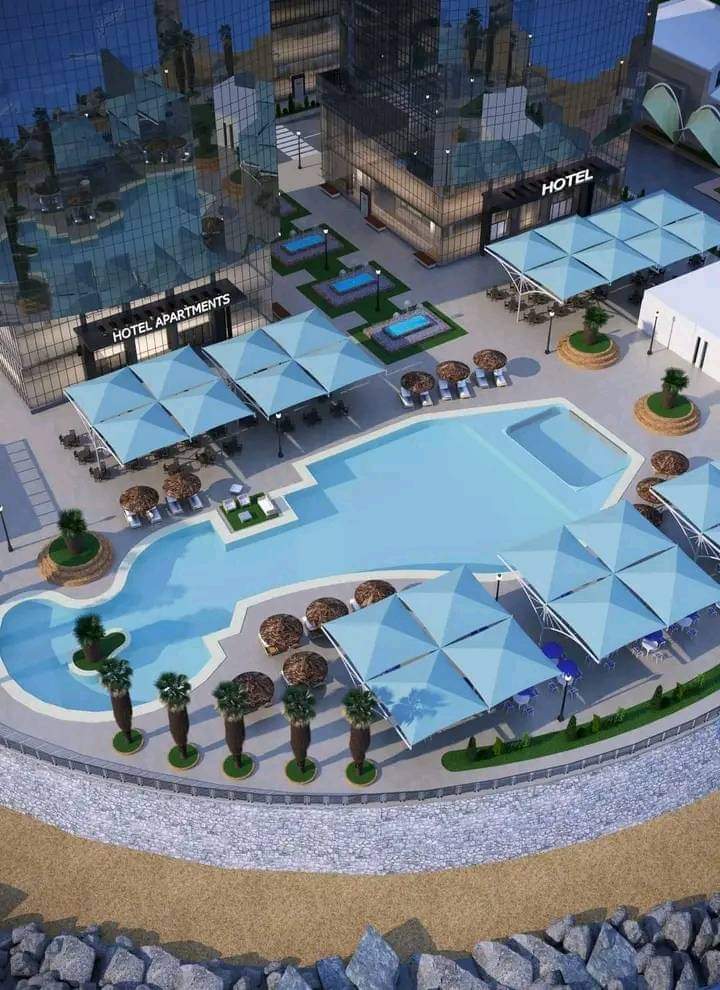 يحتوي المشروع على شبكات امطار تفوق الكيلو متر وشبكات صرف صحي تفوق الكليو متر أيضا وقد تم استخدام سخانات مركزية ومنظومة دفع مياه متطورة لتكون مناسبة لهذا المشروع